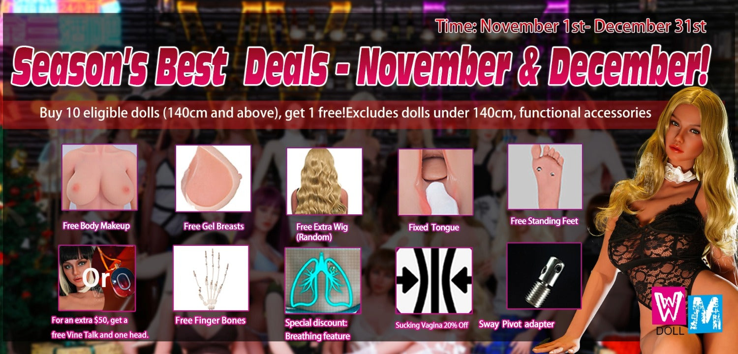 Velge sexdukke etter størrelse, stil eller merke. Vi samarbeider med markedsledende produsenter og merker som WM-Doll, Irontech Doll, Zelex, Starpery, osv. Med oss kan du finne både lavprisdukker og eksklusive silikon dukker til de beste prisene på markedet og alltid av høyeste kvalitet.