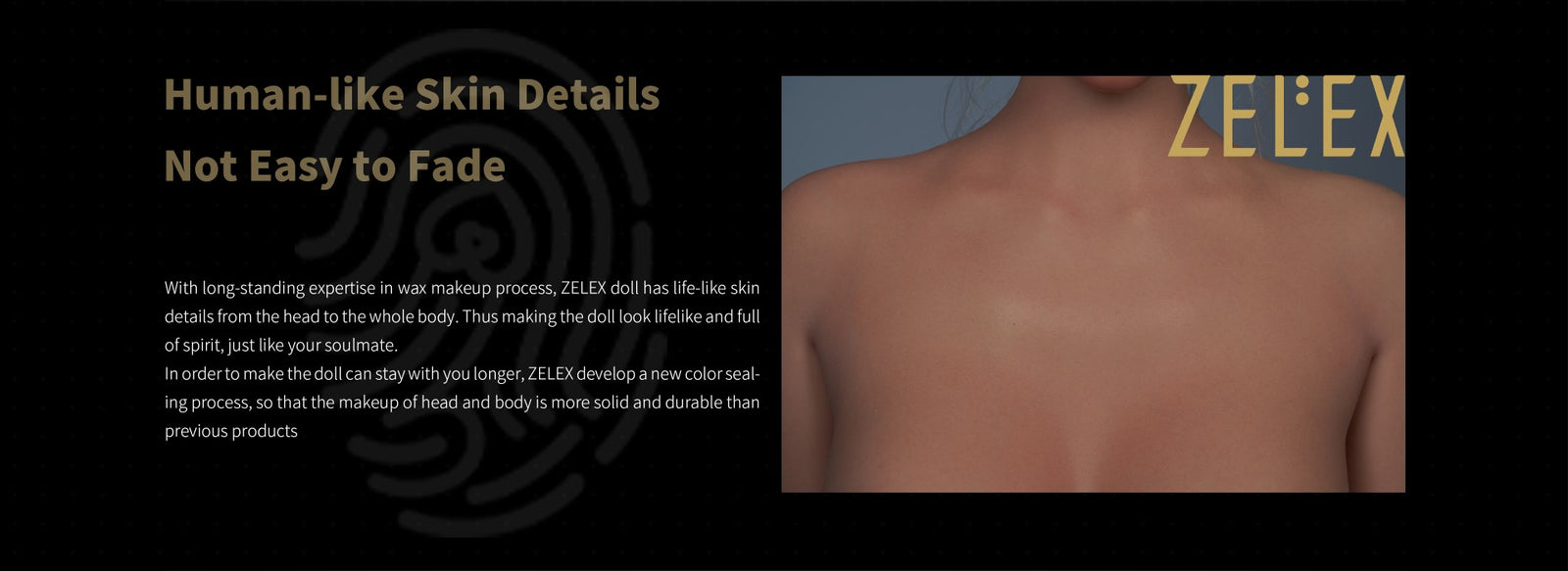 Zelex er en etablert produsent av realistiske dukker av høy kvalitet laget basert på virkelige menneskelige modeller. Siden 2013 harZelex Jobbet med den absolutte siste teknologien innen 3D -skanning og leirskulpturer for å reprodusere utseendet til de virkelige modellene så nøyaktig som mulig. Med ekstra høye nivåer av detaljer og unike utseende får du oppleve dukker med personlighet og utstråling som får dem til å føle seg ekstra levende. Ved å bruke materialer av høyeste kvalitet og helt sikre produksjonsmetoder, gjenskapes en myk og levende tekstur ved kontakt.